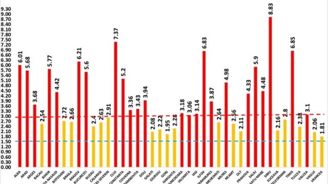 Coronavirus Romania: Sibiul a ajuns la rata de pozitivare de 8,83 la mia de locuitori. Alte cinci judete au depasit incidenta de 6 la mie