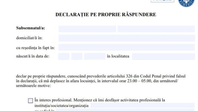 Cum arata declaratia pe propria raspundere necesara pentru deplasarea pe timpul noptii si de unde poate fi descarcat documentul