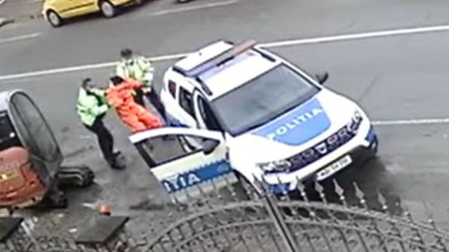 VIDEO Barbat batut de un echipaj de Politie pentru ca nu purta masca si bagat cu forta in autospeciala
