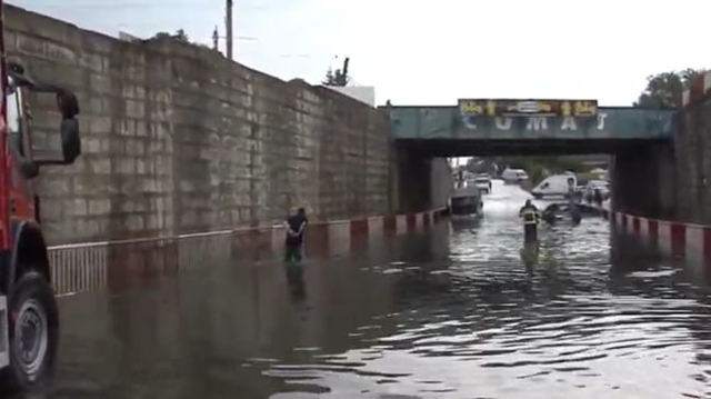 VIDEO Strazi inundate in Focsani. Apa trece de jumatate de metru. Un autobuz a ramas blocat
