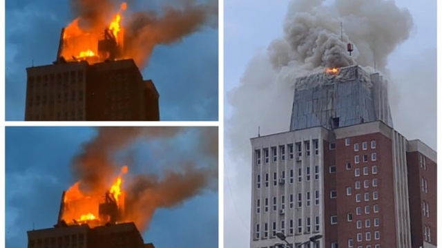 FOTO VIDEO Incendiu urias la Resita. Arde cladirea in care functioneaza Primaria, Consiliul Judetean si Prefectura