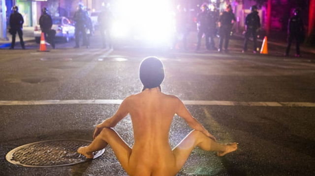 Misterioasa "Atena". Cum s-a dezvoltat legenda vie a protestatarei goale din Portland