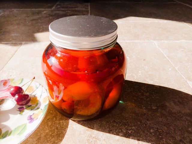 Compot de caise, visine si apa de trandafiri
