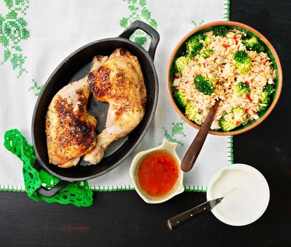 Pulpe de pui la gratar cu orez condimentat