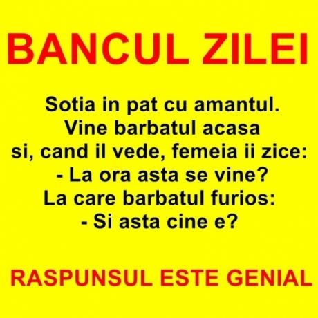 BANCUL ZILEI: Soţia în pat cu amantul. Vine bărbatul acasă...