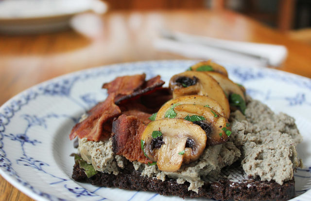 Ciuperci si ficat de pui pe felii de bacon