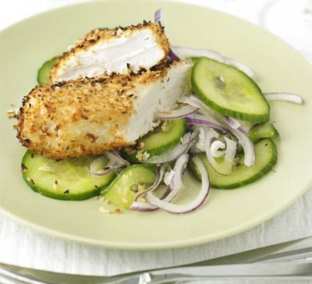 Carne de pui cu nuca de cocos si salata de castraveti