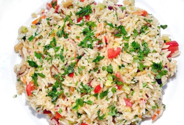 Salată de orez, ardei și roșii