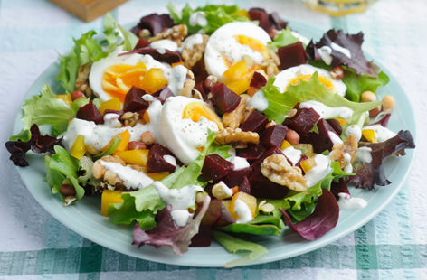Salată cu ouă fierte și sfeclă roșie