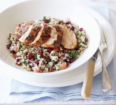 Carne de curcan cu salata de bulgur si rodii