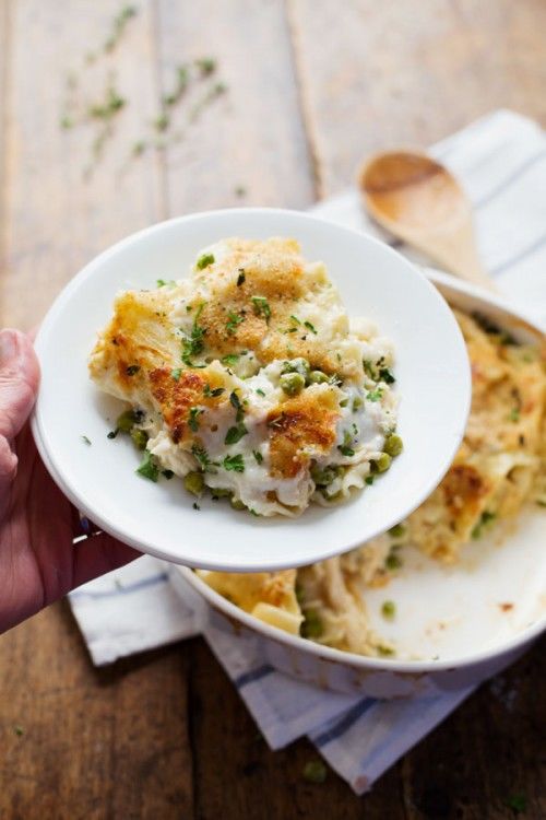 Lasagna cu pui si branza in sos alb