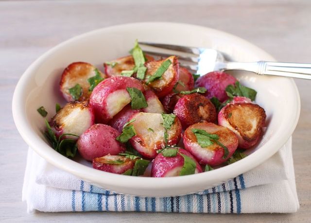 Ridichi rosii la cuptor cu verdeturi