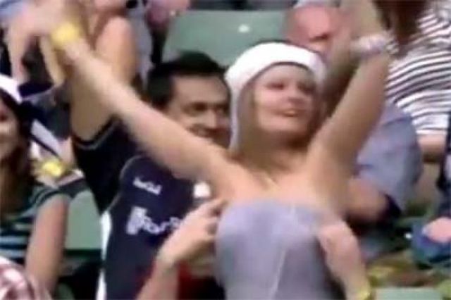 N-o să-i ierte niciodată gluma asta! Şi-a lăsat iubita în sânii goi în faţa unui stadion întreg! VIDEO