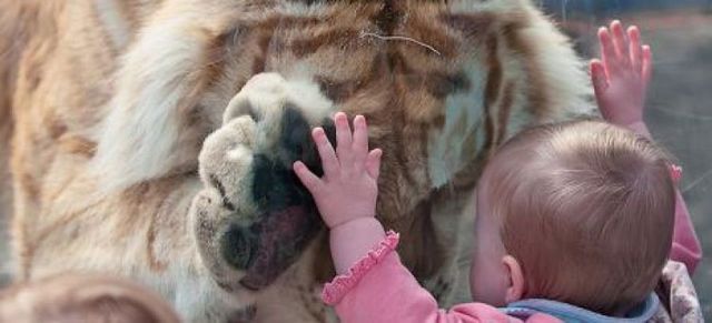 FOTO INCREDIBIL! Un tigru bengalez bate cuba cu o fetiţă de doi ani!