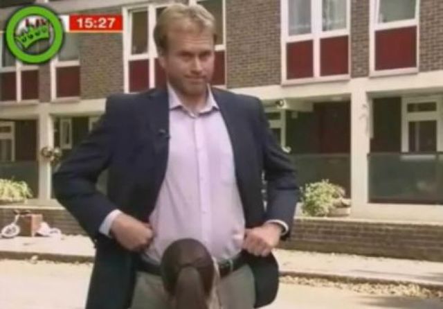RĂMÂI INTERZIS - Ziua în amiaza mare, o reporteriţă sexy scormoneşte în prohabul unui cunoscut politician! - VIDEO EXPLICIT