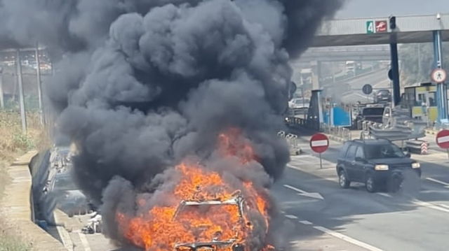 Incendiu pe autostrada A3: O mașină a luat foc, blocând traficul către București