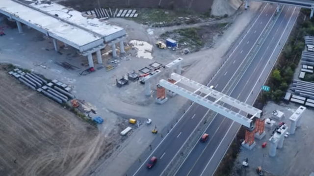 Progrese galopante pe Autostrada Moldovei: Primele grinzi ale nodului cu A3 s-au pus pe timp de weekend VIDEO