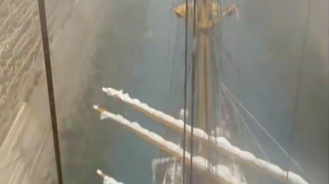 Nava-şcoală ”Mircea”, surprinsă de o furtună în timp ce traversează canalul Corint. Imaginile spectaculoase postate de MApN VIDEO
