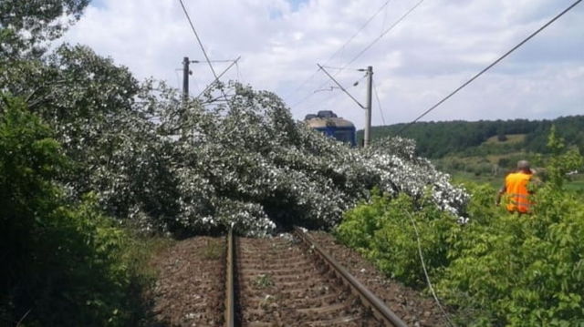 Trafic feroviar oprit temporar în județul Mureș după ce mai mulți copaci au căzut pe calea ferată