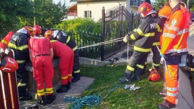 UPDATE Intervenție de urgență a pompierilor pentru scoaterea unui copil și a doi adulți dintr-o fântână adâncă de 19 metri